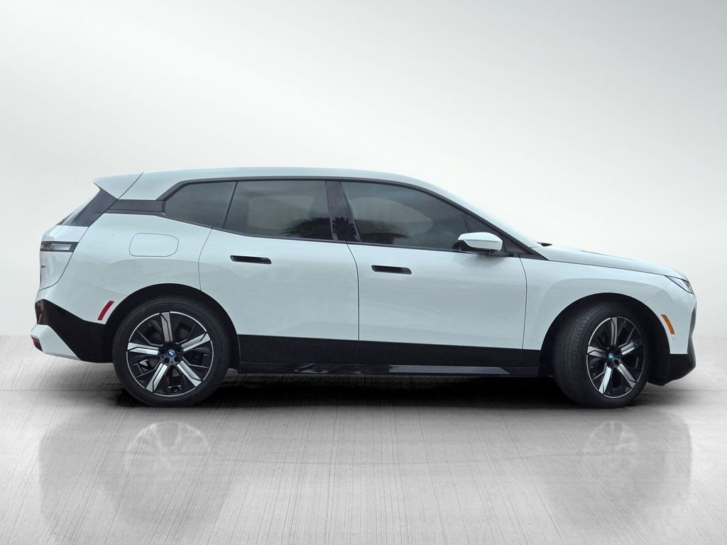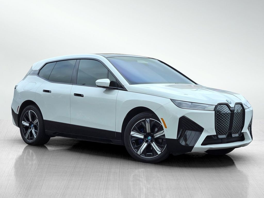 Alpine White 2024 BMW iX xDrive50 4D Sport Utility AWD Electric Motor Single-Speed Automatic 12 Speakers, 4-Wheel Disc Brakes, ABS brakes, Active Cruise Control w/Stop & Go, Active Driving Assistant Pro, Active Lane Keeping Assistant, AM/FM Stereo, Apple CarPlay & Android Auto Compatibility, Apple CarPlay Compatibility, BMW Assist eCall, BMW TeleServices, Brake assist, Bumpers: body-color, Connected eDrive Services, Connected Package Pro, ConnectedDrive Services, Convenience Package, Driving Assistance Professional Package, Dual front side impact airbags, Emergency communication system: BMW Assist eCall, Four wheel independent suspension, Fully automatic headlights, harman kardon Surround Sound System, Heated Front Seats, Hi-Fi Sound System, Highway Assistant, Iconic Sounds Electric, Live Cockpit Pro, Low tire pressure warning, Memory seat, Natural Interaction, Navigation, Navigation System, Overhead airbag, Parking Assistant Plus, Parking Assistant Professional, Passenger door bin, Power driver seat, Rain sensing wipers, Rear anti-roll bar, Rear dual zone A/C, Rear window defroster, Remote keyless entry, SiriusXM w/360L & 1 Yr Platinum Plan Subscription, Specific Additional Contents in Sport Package, Speed-Sensitive Wipers, Spoiler, Sport Package, Sport Package (330), Surround View w/3D View, Traction control, Traffic Jam Assistant, Wheels: 21" x 9" Aero Bi-Color (Style 1012), Wireless Device Charging.