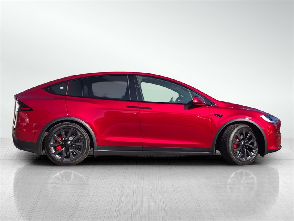 Ultra Red 2023 Tesla Model X Plaid 4D Sport Utility AWD Electric Motor 1-Speed Automatic 22 Speakers, 3rd row seats: split-bench, 4-Wheel Disc Brakes, 6 Seat Interior, ABS brakes, Auto-dimming door mirrors, Automatic temperature control, Axle Ratio: TBD, Brake assist, Delay-off headlights, Driver door bin, Dual front impact airbags, Dual front side impact airbags, Exterior Parking Camera Rear, Front anti-roll bar, Front Center Armrest, Front dual zone A/C, Fully automatic headlights, Garage door transmitter: Homelink, Heated door mirrors, Heated rear seats, Heated steering wheel, Knee airbag, Lane Departure Warning System, Leather steering wheel, Low tire pressure warning, Memory seat, Navigation System, Outside temperature display, Passenger vanity mirror, Power Liftgate, Power passenger seat, Power steering, Power windows, Premium Audio System, Radio data system, Rain sensing wipers, Rear air conditioning, Rear audio controls, Rear reading lights, Rear side impact airbag, Rear window defroster, Remote keyless entry, Speed control, Spoiler, Steering wheel memory, Steering wheel mounted audio controls, Traction control, Trip computer, Variably intermittent wipers, Ventilated front seats, Wheels: 20" Cyberstream. Odometer is 18455 miles below market average!